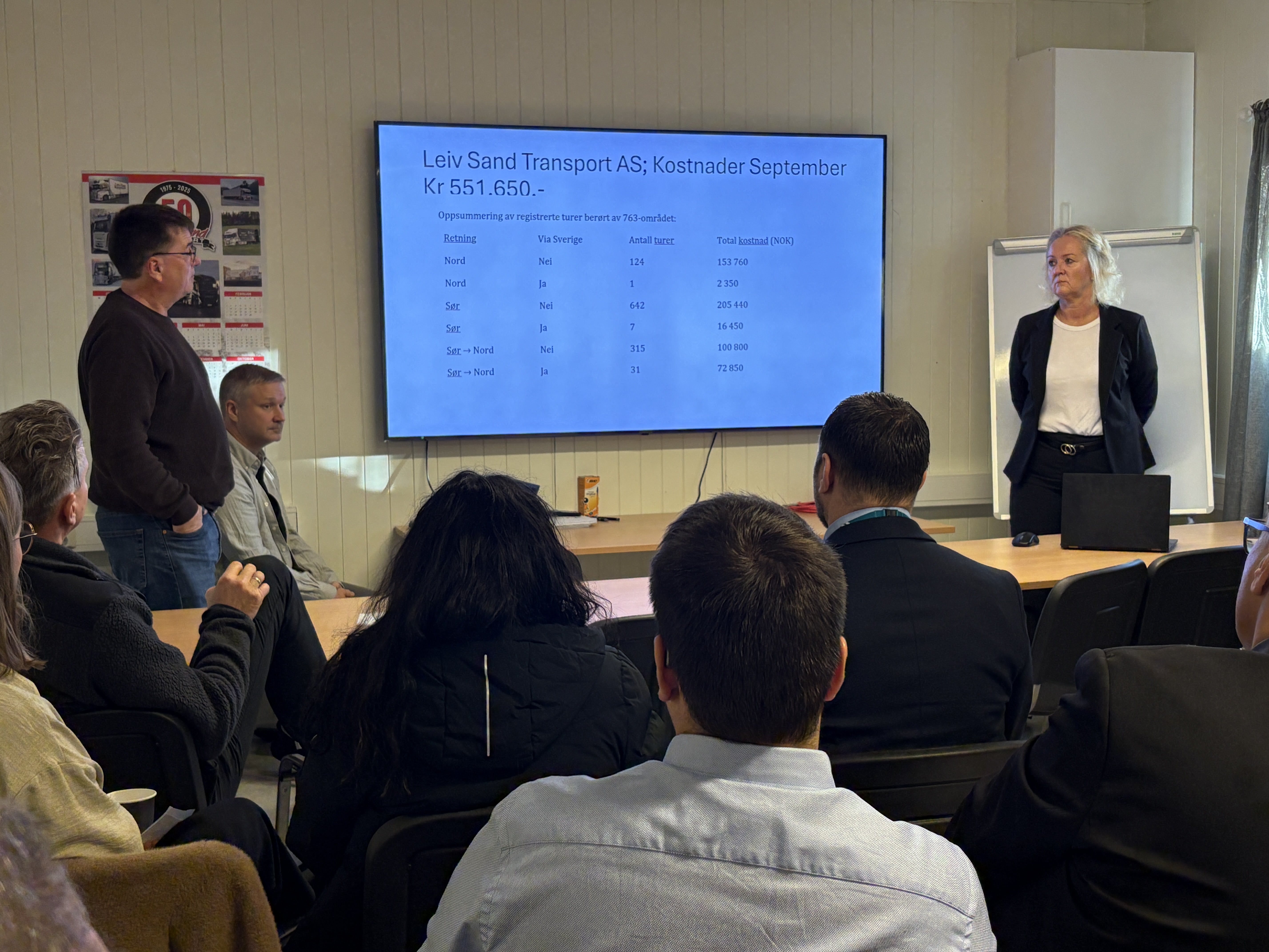 - Sjåførene er dyktige, de tar hensyn, de kjører de anbefalte rutene og gjør det beste de kan ut fra situasjonen, men det er en kjent sak at de veiene som så langt har vært brukt til omkjøring, ikke er egnet for denne typen trafikk. Takk og lov for at dette skjedde på sensommeren og ikke på vinteren, men nå har vi hjertet i halsen med tanke på mørketiden vi har foran oss, med snø og glatte veier, sier Arild Sand, daglig leder for Leiv Sand Transport AS, til unison støtte fra salen.