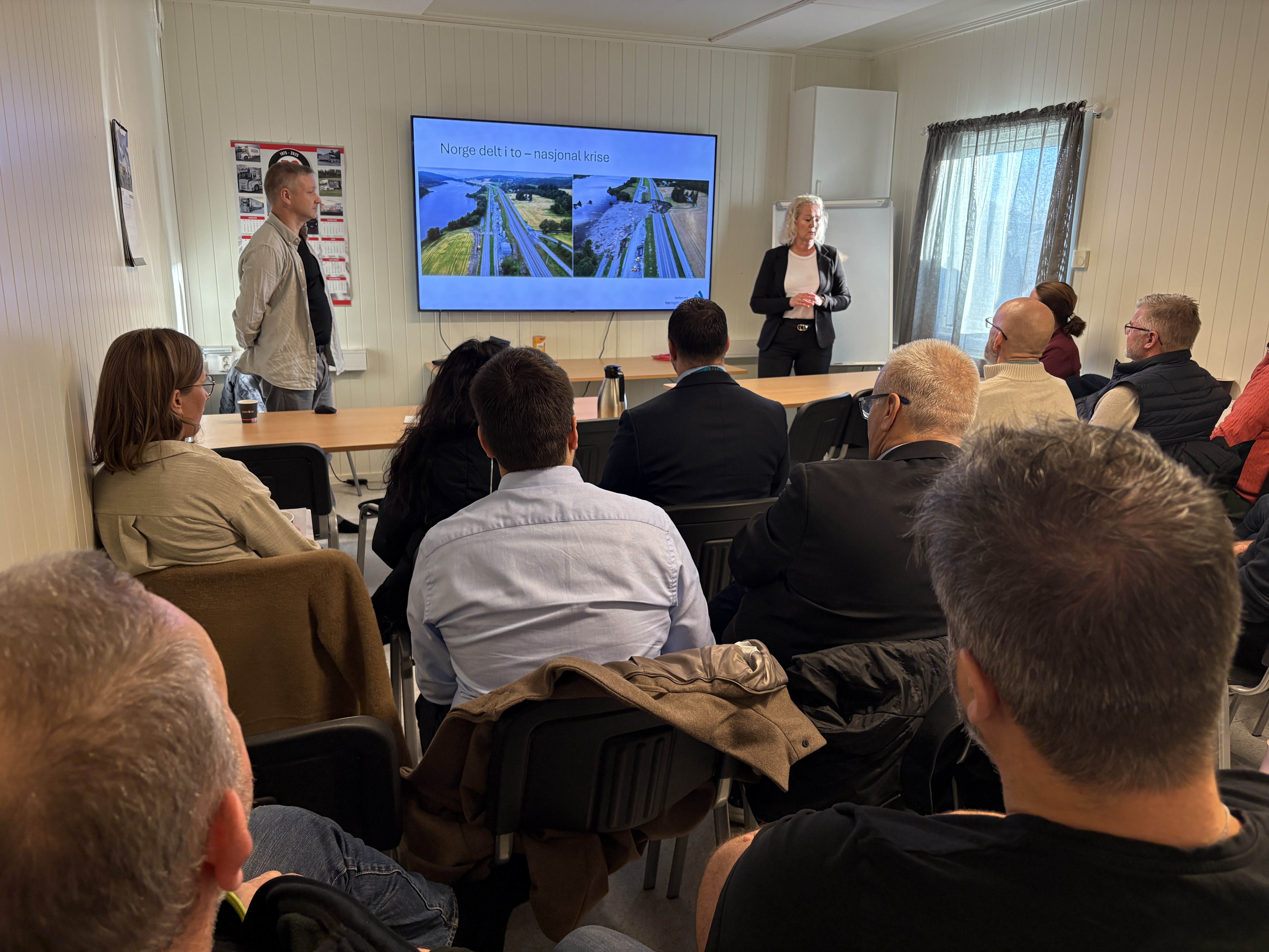 - Det er ikke bare på denne strekningen at en hendelse kan få så store konsekvenser – flere steder i vår region er veinettet så dårlig at veiene stenges med jevne mellomrom, uten gode muligheter for omkjøringer, og da deles Norge nesten hver gang. Og det som raset virkelig har vist oss, er dessverre at når krisen inntreffer, står byråkratiet sterkere enn løsningsorienteringa. Det fører til at alt tar altfor lang tid, og ingen tar et overordna ansvar, oppsummerer Furunes fra innleggene i rommet.