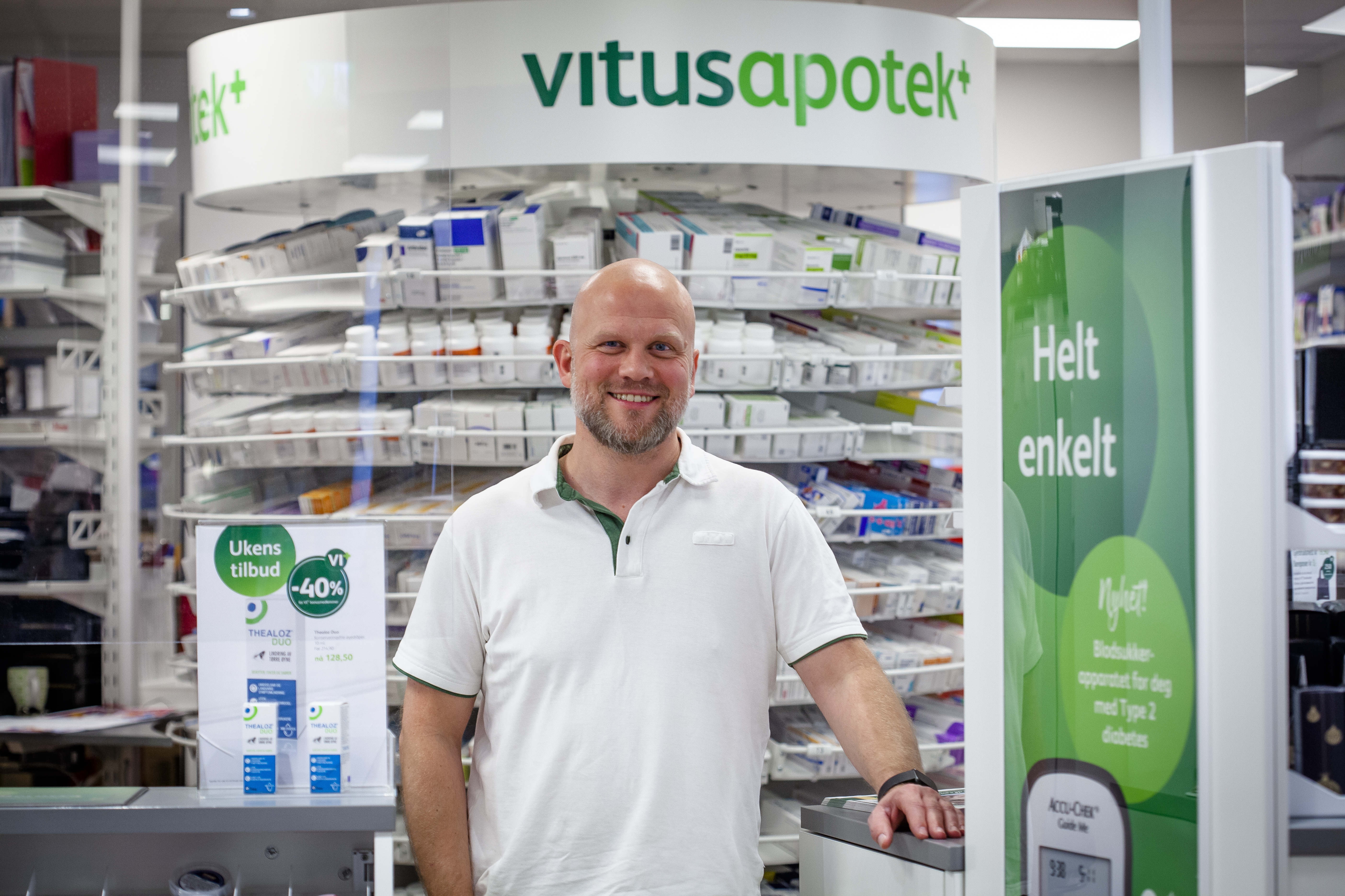 - De aller fleste apotekene som heter Vitusapotek er heleid av Norsk Medisinaldepot. Men så har de også et sideprosjekt som de kaller samarbeid, der det er mulighet for lokale aktører som oss å ha et eierskap i apoteket, forklarer daglig leder Woll.